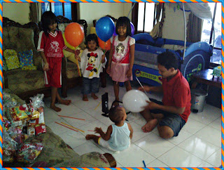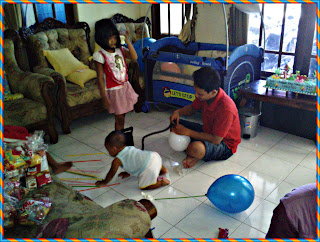 Saat yang sangat menyenangkan melihat perkembangan si kecil, mulai dari merangkak, belajar jalan dll, trus yang bikin ngegemesin tingkahnya yang g' pernah bisa diem, begitu juga ngomongnya yang semakin ngelantur kesana kesini g' jelas, klo udah di omelin eh malah bales triak2, lucu banget... ^^
